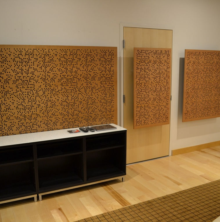 The RealAcoustix FAST Xposed panel is a mathematically perforated panel that provides both tuned absorption and high-frequency diffusion. Available in a wide array of wood veneers and stains, they are both architecturally interesting and beautiful while providing excellent sound characteristics to any room.